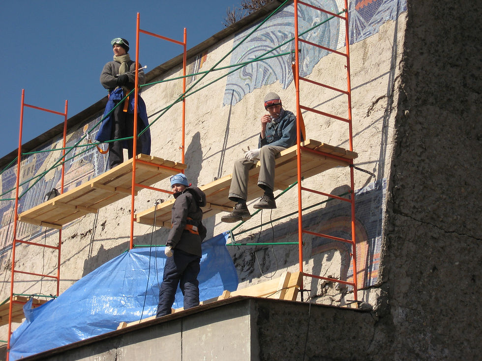 Restoration of the mosaic panel "Conquerors of Ob " by Sokol V.